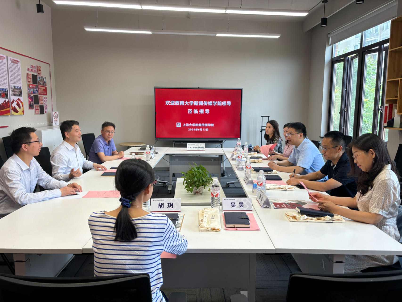 13日下午,调研组赴华东师范大学传播学院,与副院长肖洋、新闻系主任李海波、广播电视系张玲平进行座谈交流。两院在学科背景、学科设置等方面情况近似,双方围绕部校共建、硕士学位点建设、艺术类专业发展、出版专业建设等共同关心的问题展开了充分交流与探讨。