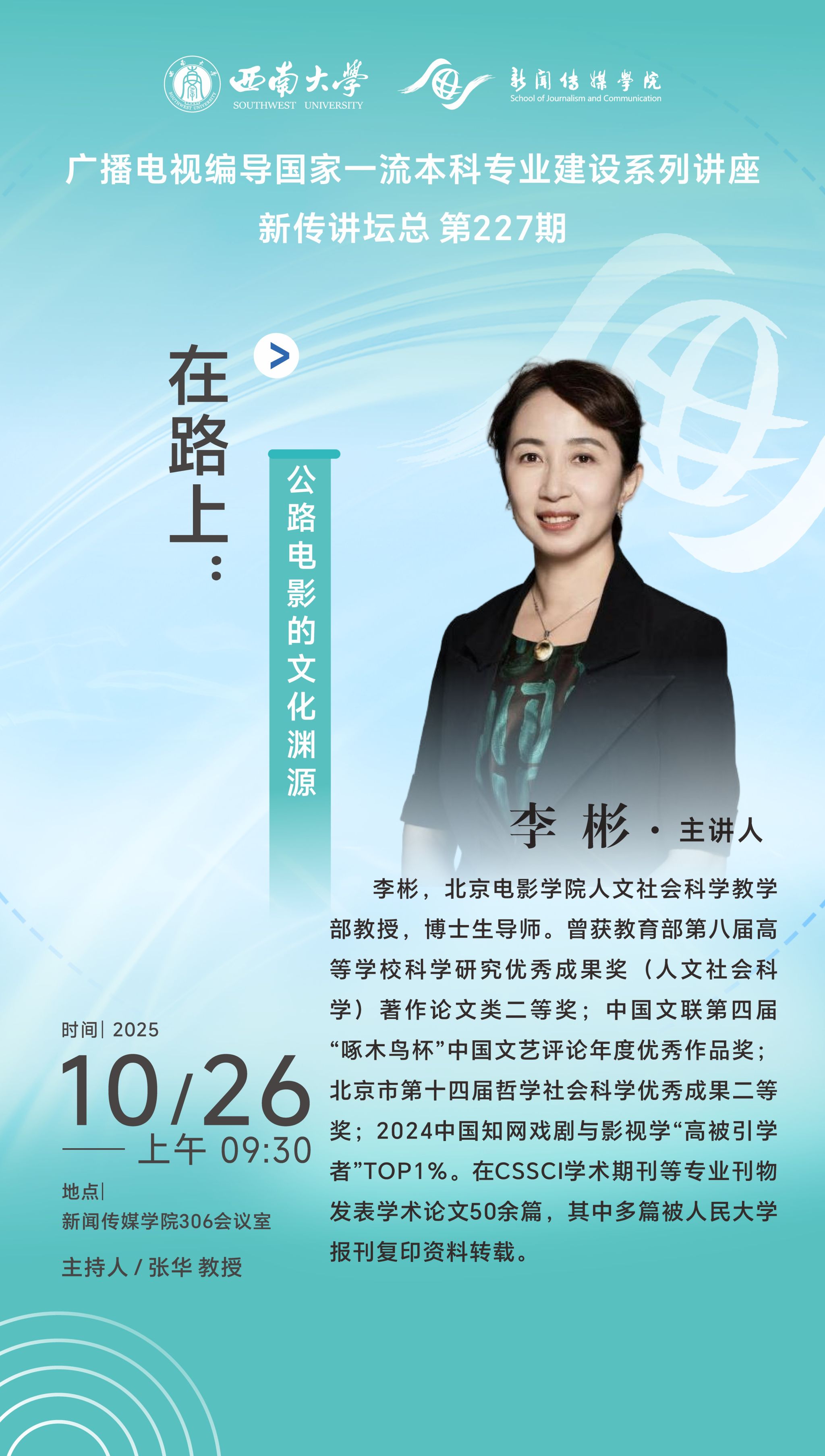 新传讲坛总第227期 | 李彬:在路上—公路电影的文化渊源