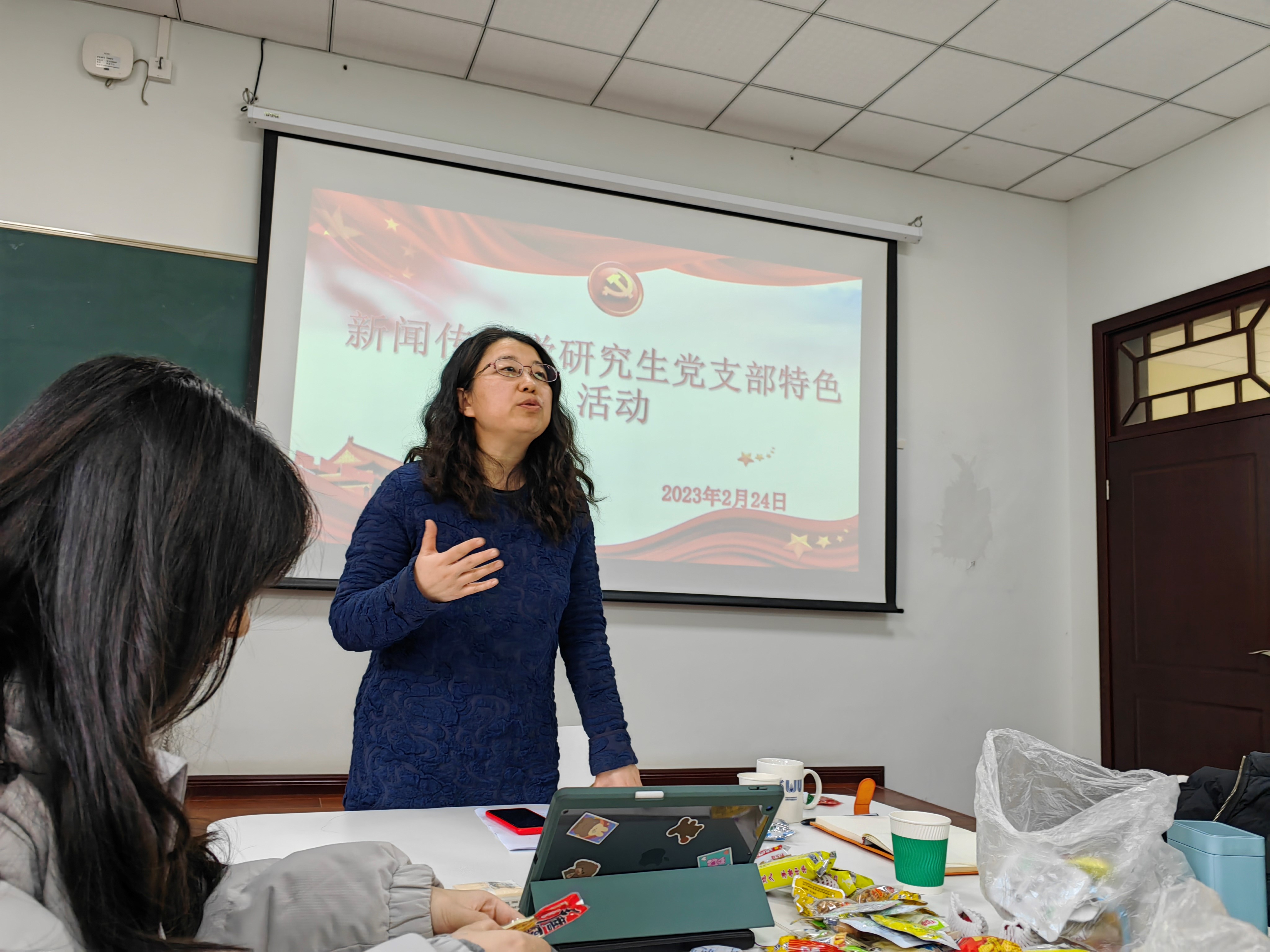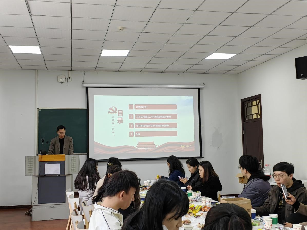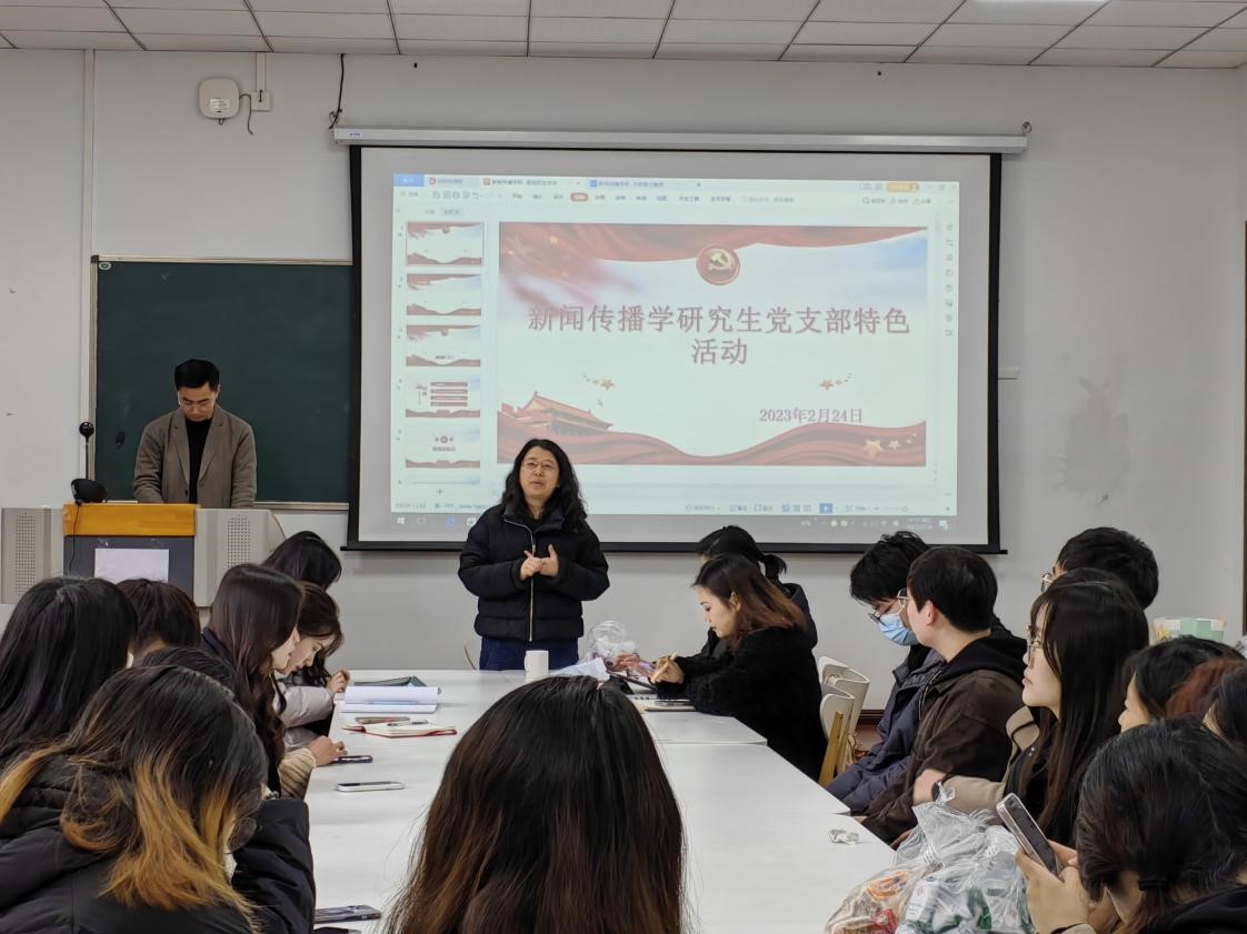 为了促进支部同志间的认识与了解,加深同志间的交流与感情,2023年2月24日星期五下午,新闻传播学研究生党支部于学院307教室开展了专题学习以及家乡特产分享座谈会,党支部全体成员以线上线下的方式参会。