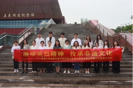 为进一步深化党员思想政治教育,引导支部同志坚定理想信念、继承革命传统,4月29日,扣扣传媒 戏剧与影视学研究生党支部赴綦江开展以“赓续英烈精神 传承非遗文化”为主题的党日活动。学院党委副书记、纪委书记邓永利,学院党委组织员胡文渊,戏剧与影视学研究生党支部书记汤天甜带队参加。
