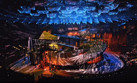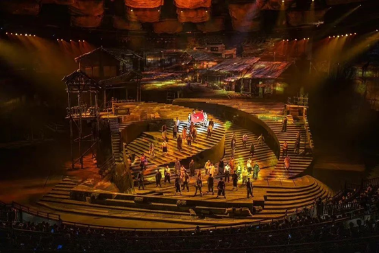 坐落在古镇磁器口旁的重庆1949大剧院,耗时三年、花费8亿人民币打造而成,是世界最大的单一室内剧场,拥有国内唯一的360度旋转舞台。