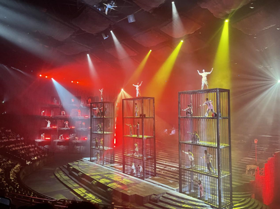 多维立体沉浸式室内旋转舞台上,嘈杂熙攘的磁器口码头、层叠错落的吊脚楼群、扬帆驶入舞台的轮船、与观众不到一米的黑暗铁牢,一个个真实生动的场景,再现了73年前黎明前夕的黑暗山城。家国情、兄弟情、母子情、战友情、爱情多条故事线交织,穿插狱中绣红旗、重庆解放的隆隆炮声等熟悉的情节场景,共同构筑了恢弘而饱满的历史画卷。高新尖舞台技术、声光电完美融合、丰富多元的舞美呈现以及近百名演员的全情表演,带给人的不仅是感官的震撼,更是心灵的冲击、思想的洗礼。