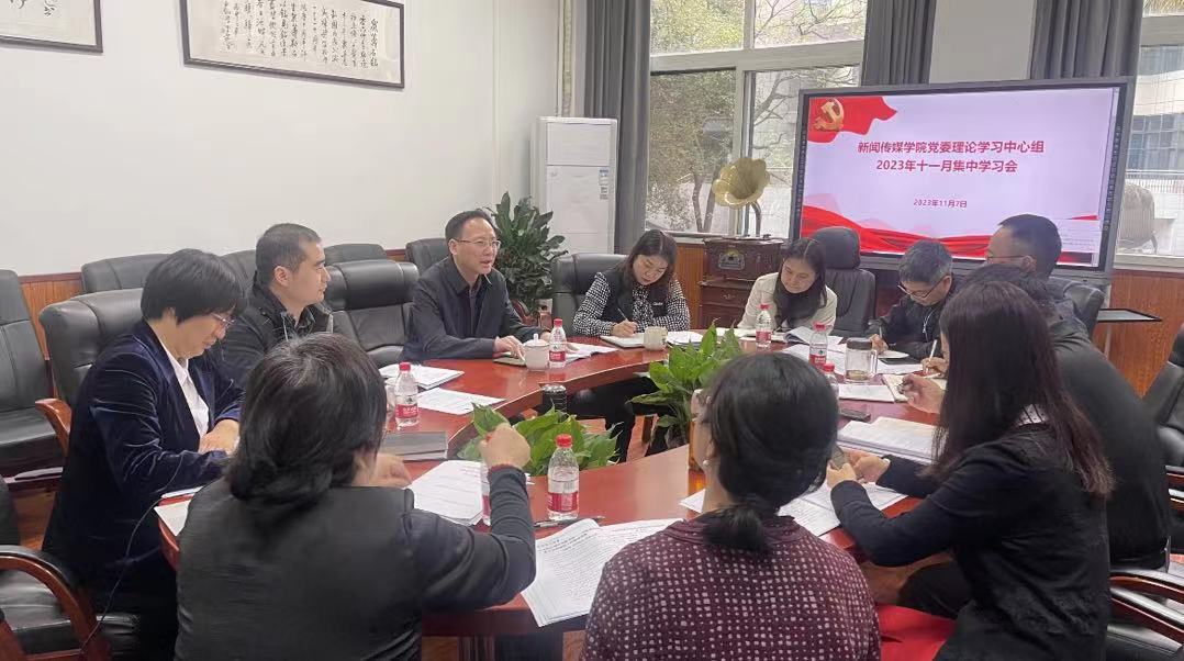11月7日上午,扣扣传媒 党委召开2023年十一月党委理论学习中心组学习会,深入学习贯彻习近平文化思想。全体中心组成员参会,学校党委委员、文学院党委书记胡建军列席会议。会议由学院党委书记严怡主持。