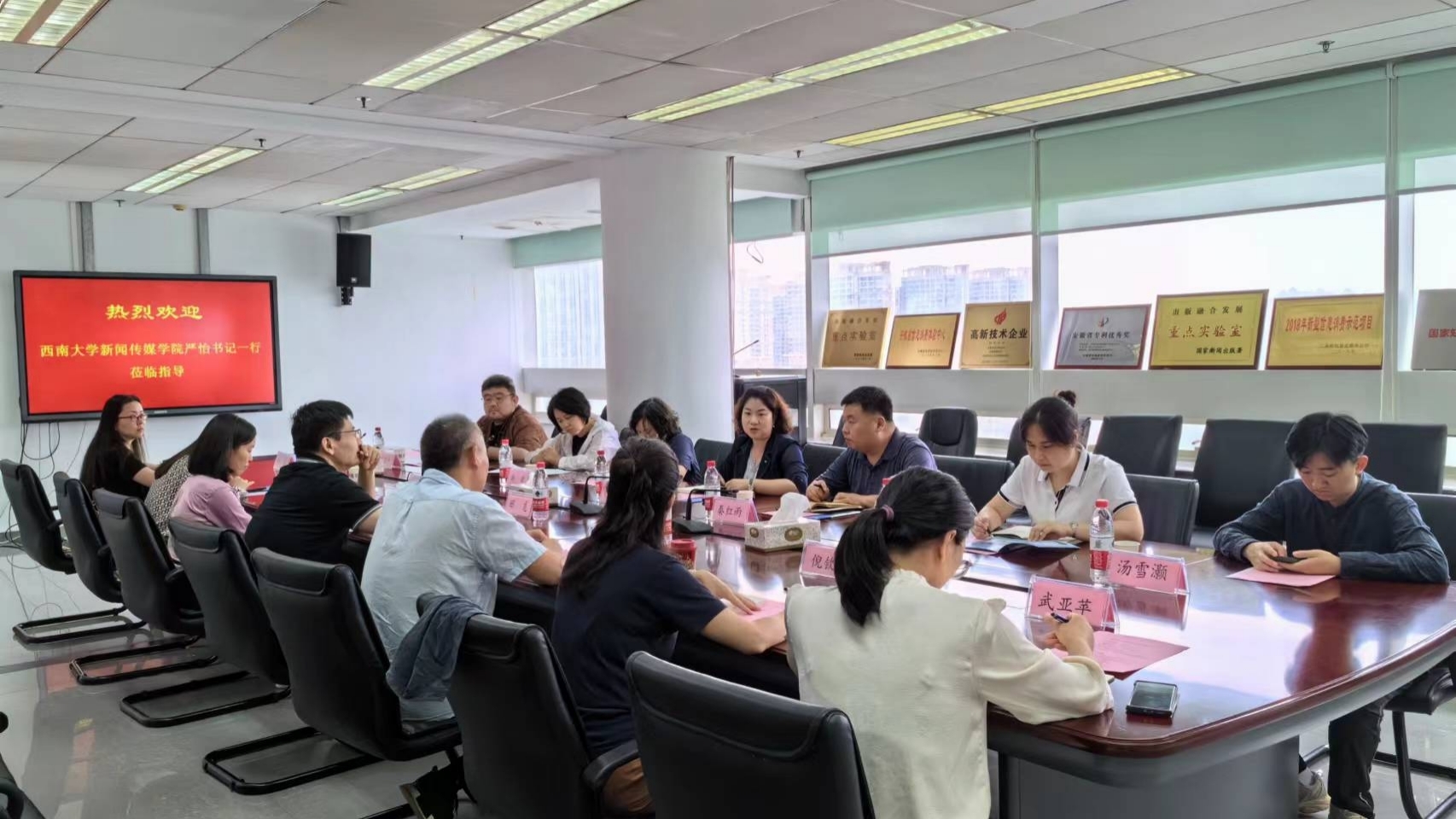 6月12日,学院一行前往芜湖传媒中心进行走访,校友葛传奇陪同。