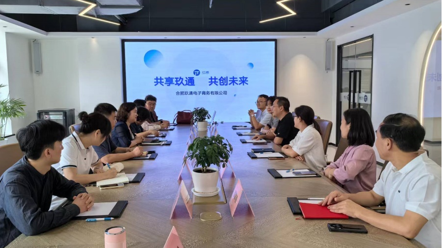 在合肥玖通电子商务有限公司,学院一行深入直播间、样品间、拍摄间,仔细观摩视频生产制作全流程。座谈交流中,企业负责人黄悦介绍在人才需求方面市场潜力大,现有的人才流入无法满足缺口,希望学院加大对新媒体人才培养的力度。何晓燕教授介绍了学校及学院在出版方面的深厚积累,提出可以在相关领域开展合作。