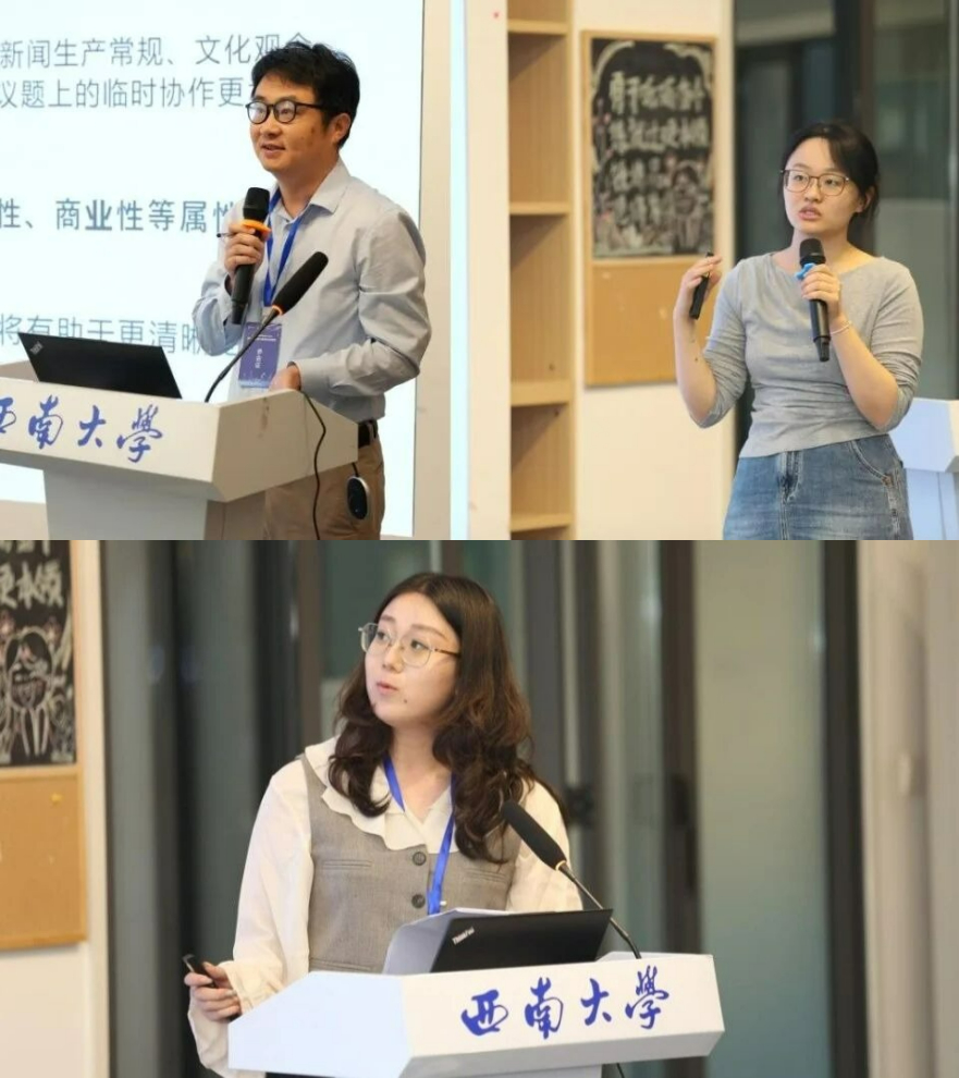 下半场,西北大学新传播学院教授王亮带来《知情还是自认为知情?社交媒体新闻偶遇对主客观知识的影响》的主题分享,广州体育学院体育传媒学院副教授张寅发表《通讯员与记者之间的"报":数字新闻生产中的传播信息交换行为》的研究成果,中国人民大学博士研究生周子杰分享《一起做新闻:平台的新闻协作实践与潜伏型边界工作》的专题报告。《南京社会科学》虞淑娟副总编、复旦大学新闻学院副院长白红义教授担任嘉宾点评。